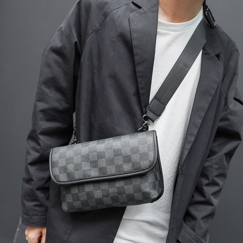 Men's Plaid Shoulder Bag Trendy Crossbody Bag Boys Street Fashion Shoulder Bag Student Small Bag Personalized Messenger Bag New