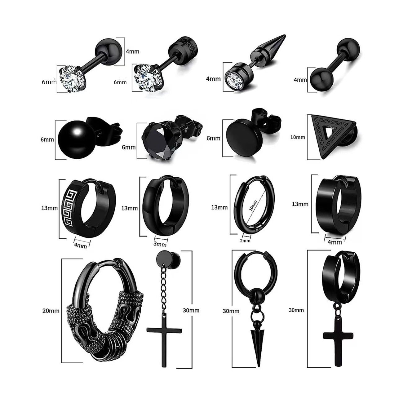 Men's Plated Classic Black Stainless Steel Stud Earrings Women's Pierced Jewelry Cross Geometric Hail Earrings suit
