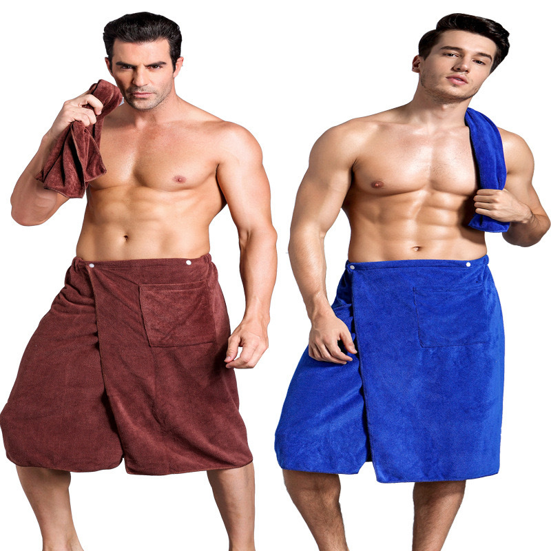 Men's Short Bath Skirt Button Bath Towel Beach Wrap Skirt Towel Cross-border Trade Single Men's elastic Belt Absorbent Towel Sexy