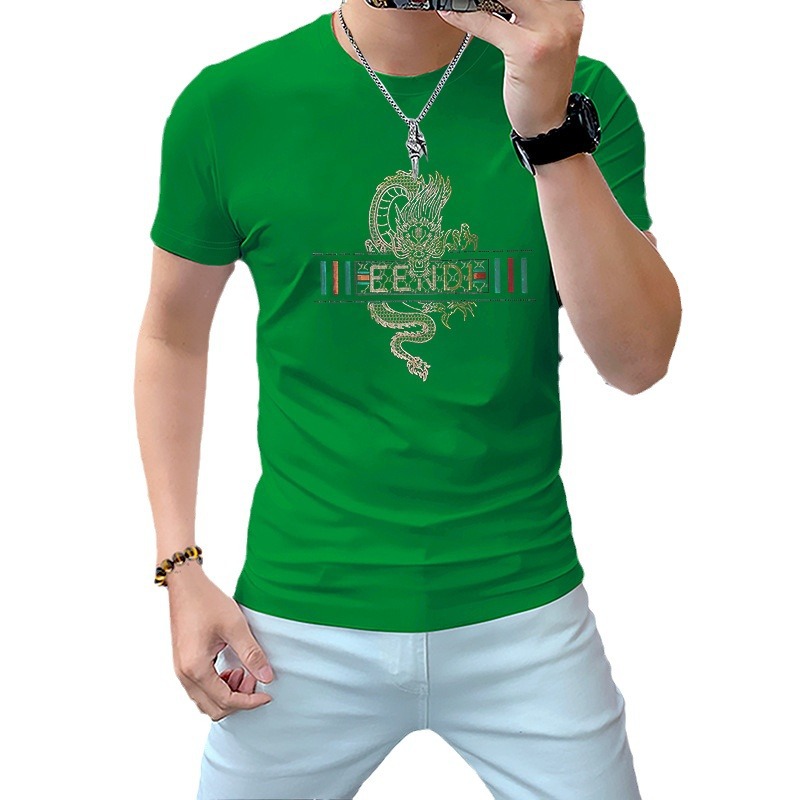 Men's short-sleeved round neck T-shirt rhinestone Dragon birth year men's mercerized cotton comfortable breathable slim-fit half-sleeve top