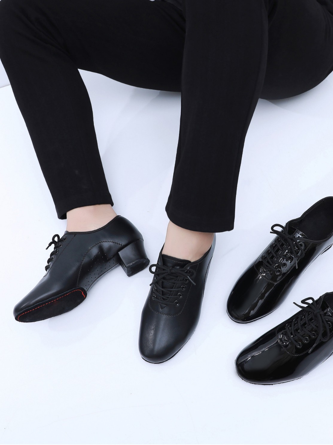 Men's Soft Leather Two-soled Latin Dance Shoes Adult Children's Comfortable Dance Practice Shoes Boys Black Dance Teacher Shoes