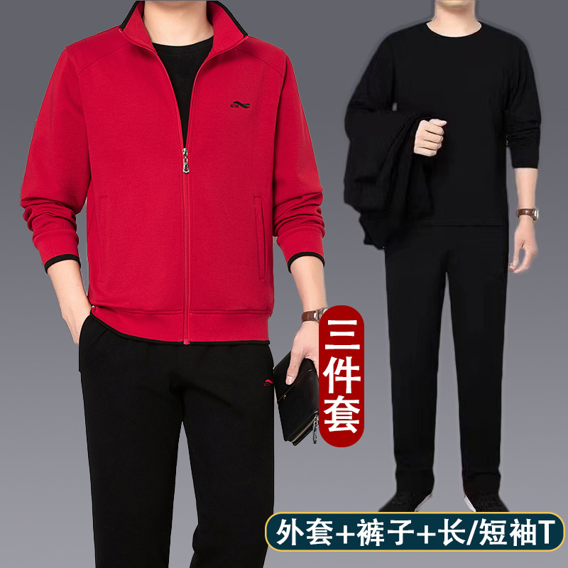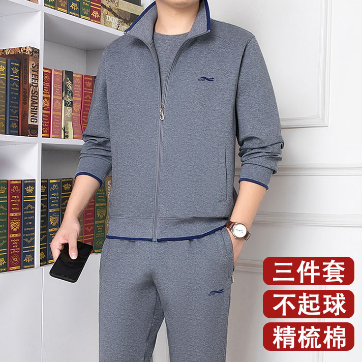Men's Sports Suit Spring and Autumn Men's Suit Dad Autumn Three-Piece Sportswear Suit Men's Middle-Aged and Elderly Cotton
