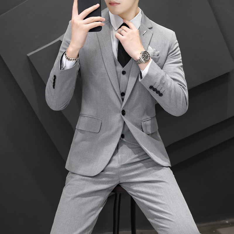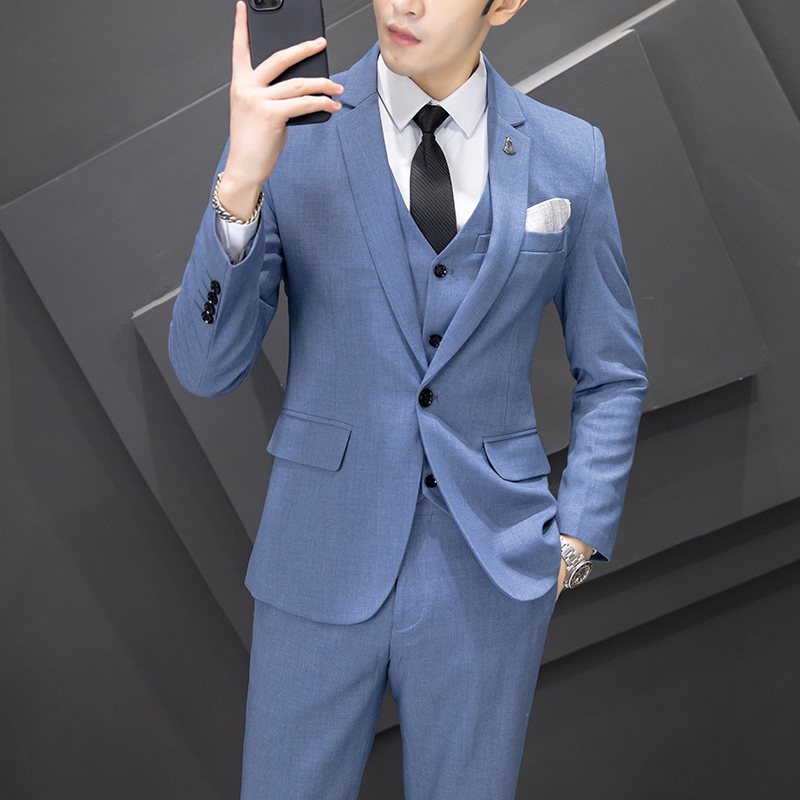 Men's Suit Set, Business Formal Wear, Three-Piece Slim Fit, Groomsmen Wedding Suit, Small Suit Jacket, Slightly Wrinkle-Resistant