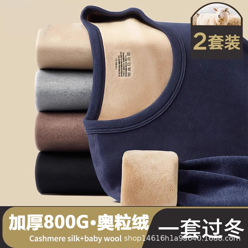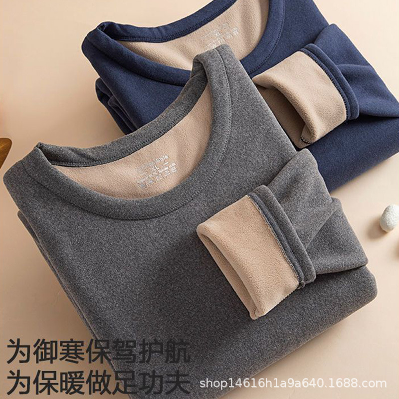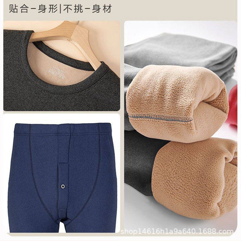 Men's Thermal Underwear Set with Fleece Lining, Thickened Autumn Clothes and Pants, Men's De Rong Cashmere, Heat-Retaining and Cold-Proof, New Winter Model