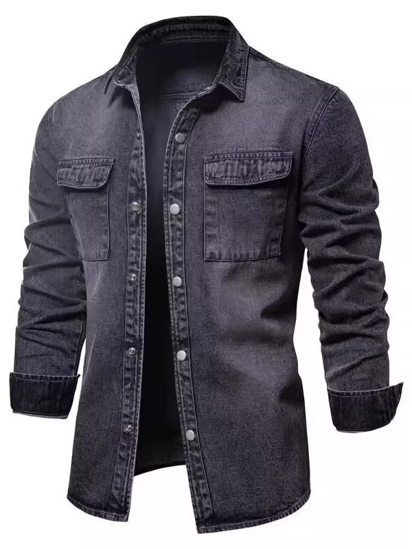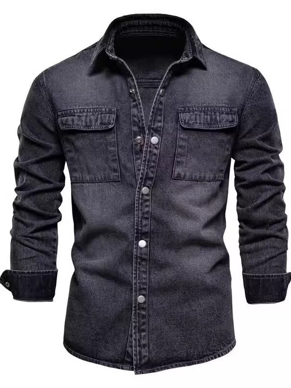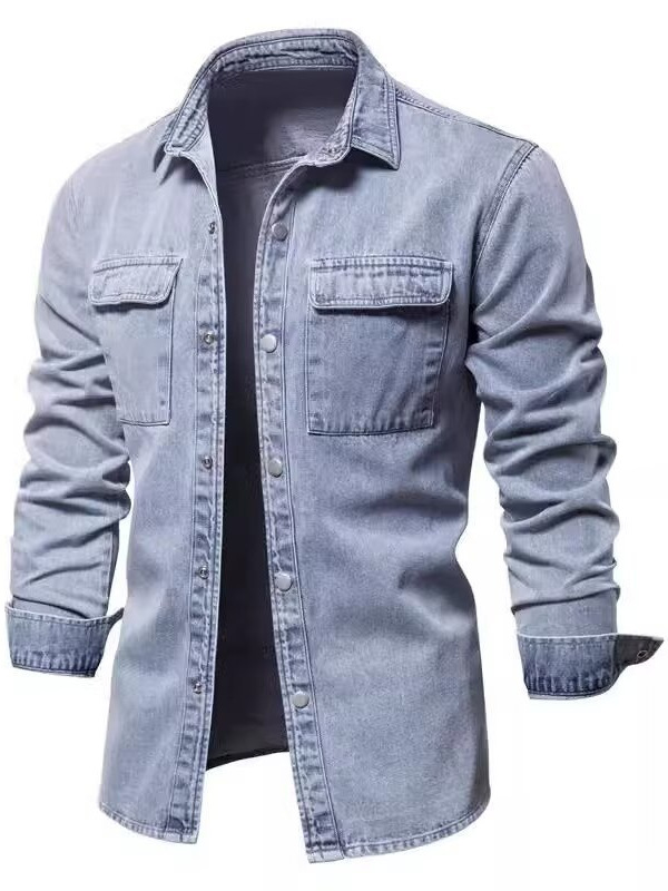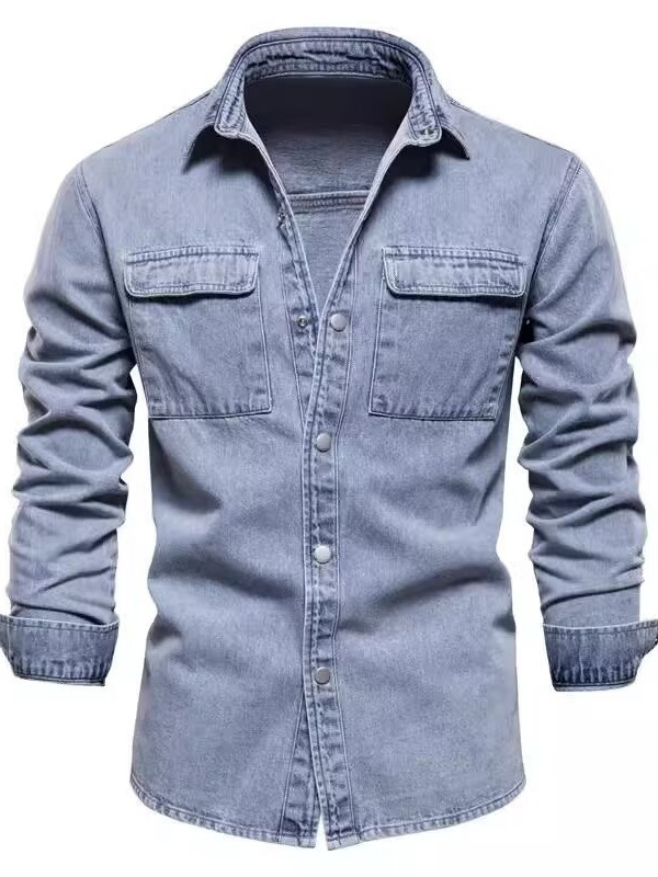 Men's Thin Denim Long-sleeved Shirt Men's 2024 Spring and Autumn Korean Style Fashionable Casual Solid Color Workwear Shirt Jacket Men's