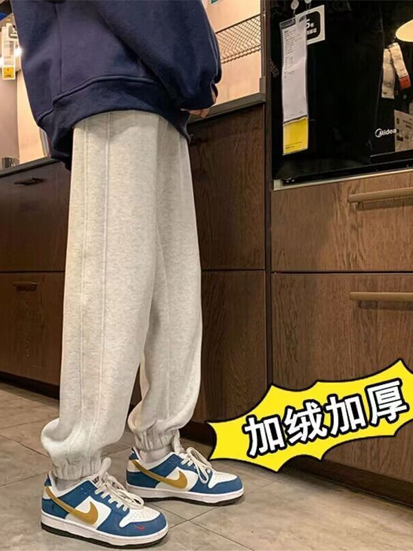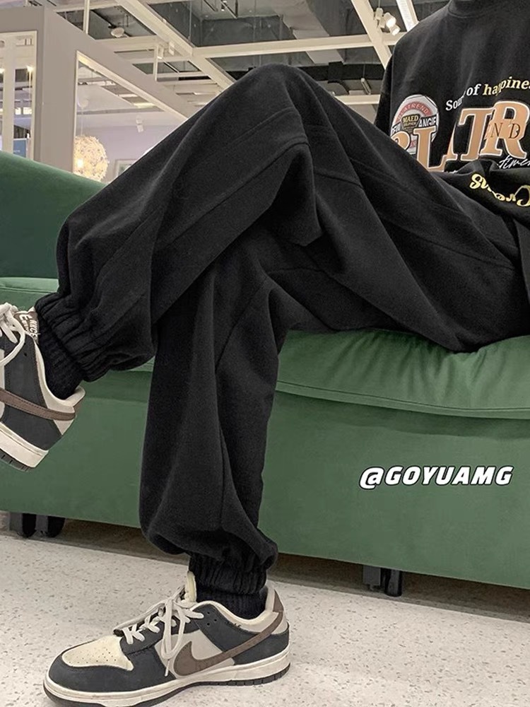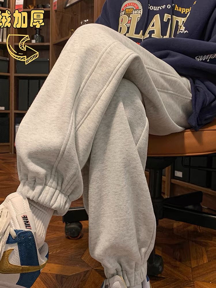 Men's Trendy Jogger Sweatpants for Spring and Autumn, American Vibe Style, Fleece-Lined, Thickened, Casual Loose Fit Sports Pants for Autumn and Winter
