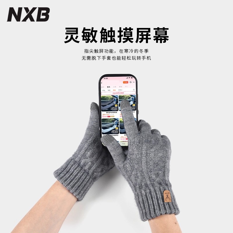 Men's Warm Gloves for Winter, Touchscreen Compatible, Fleece-Lined, Thickened, Non-Slip, Suitable for Driving and Cycling, Cold-Resistant, Knitted Wool Gloves for Men