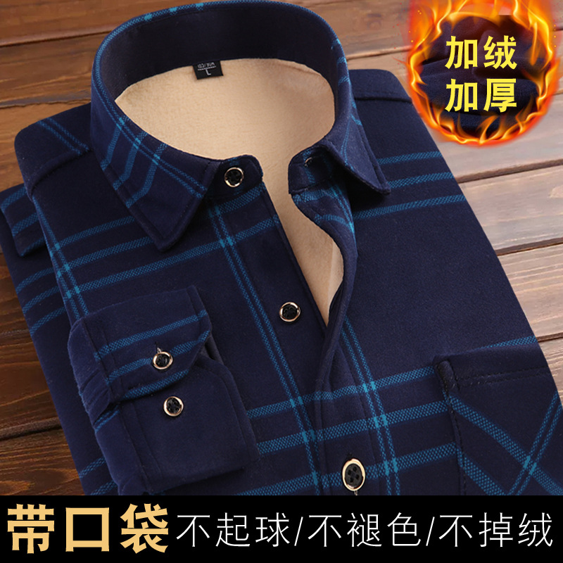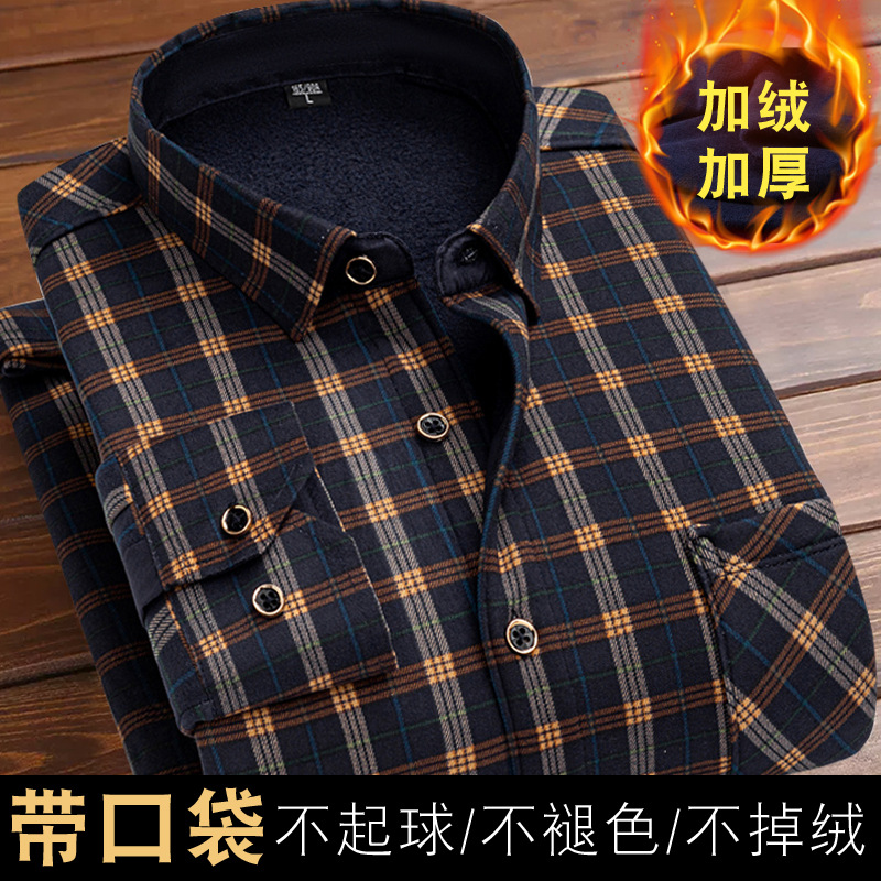 Men's Warm Shirt Thickeneded and Velvet Winter Plaid Shirt for Middle-Aged and Elderly Men Retro Printed Long-Sleeved Casual Men's Clothing