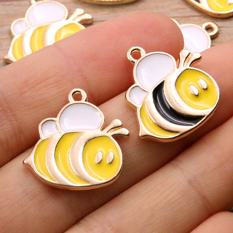 2 Color 20*20mm alloy jewelry accessories KC gold drop oil charm cute bee pendant Animal Charm