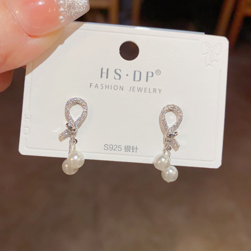 Micro-Paved Zircon Knotted Pearl Accessible Luxury Style Simple Daily Commuting Style Personalized Design Earrings Elegant Fashionable Earrings