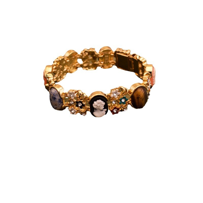 Mid-ancient Vintage Vintage Camio carved natural stone embossed enamel women's bracelet