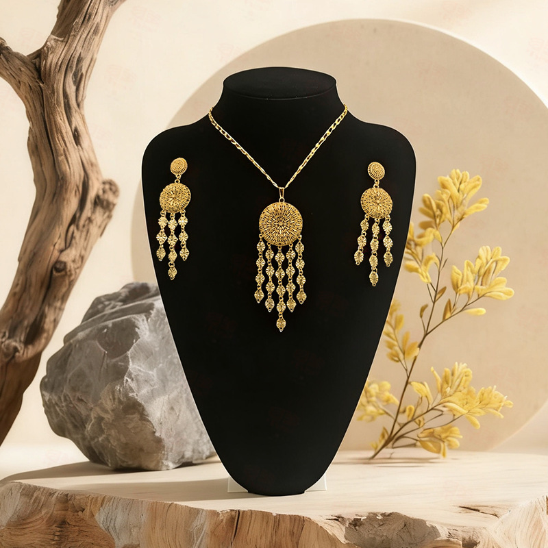 Middle Eastern Simple and Exquisite Gold-Plated Sequin Necklace Earrings Jewelry Two-Piece Set Women's Jewelry Factory Direct Supply