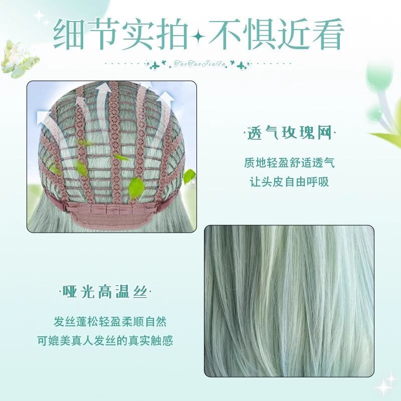 Mint Green Wig for Women with Long Hair, Sweet and Cute Daily Fashion New Style Simulated Human Long Straight Hair Full Head Wig