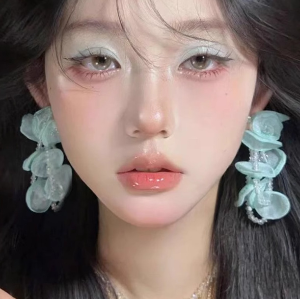 Mint Mambo Green Seaside Vacation Crystal Flower Tassel Earrings Women's Long Design Exaggerated Earrings Earrings