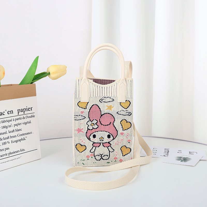 Mobile Phone Bag Kuromi Melody Cartoon Cute Knitted Bag Crossbody Bag Hand-Held Small Square Bag Crossbody