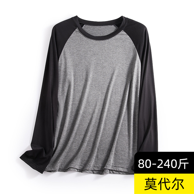Modal Men's Rulose T-Shirt plus size Loose Long-sleeved Base Autumn Wear Thin Round Neck Casual Top