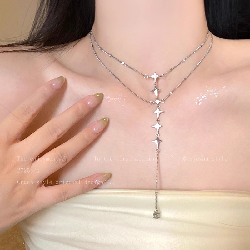 Moon Reflecting the Galaxy ~ Double Layer Necklace for Women, 2025 New High-End Clavicle Chain Necklace for Summer