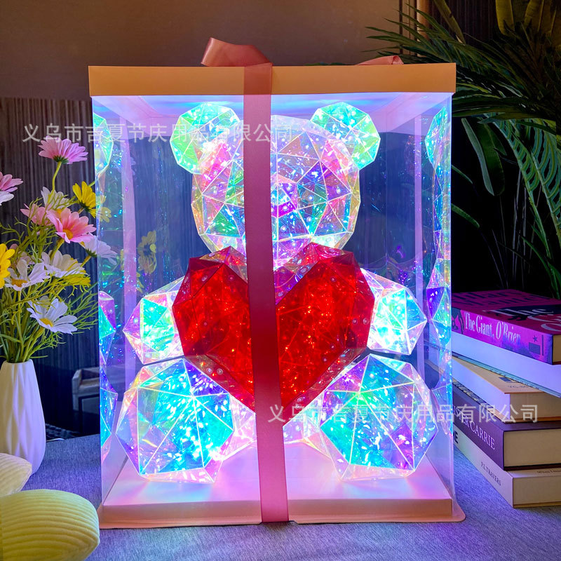 Mother's Day Valentine's Day Creative Gift Led Light Glowing Heart Bear Set Home Decoration Ornaments Gift Box