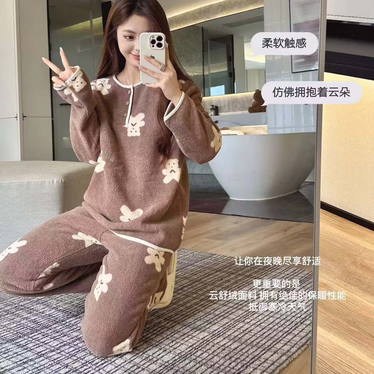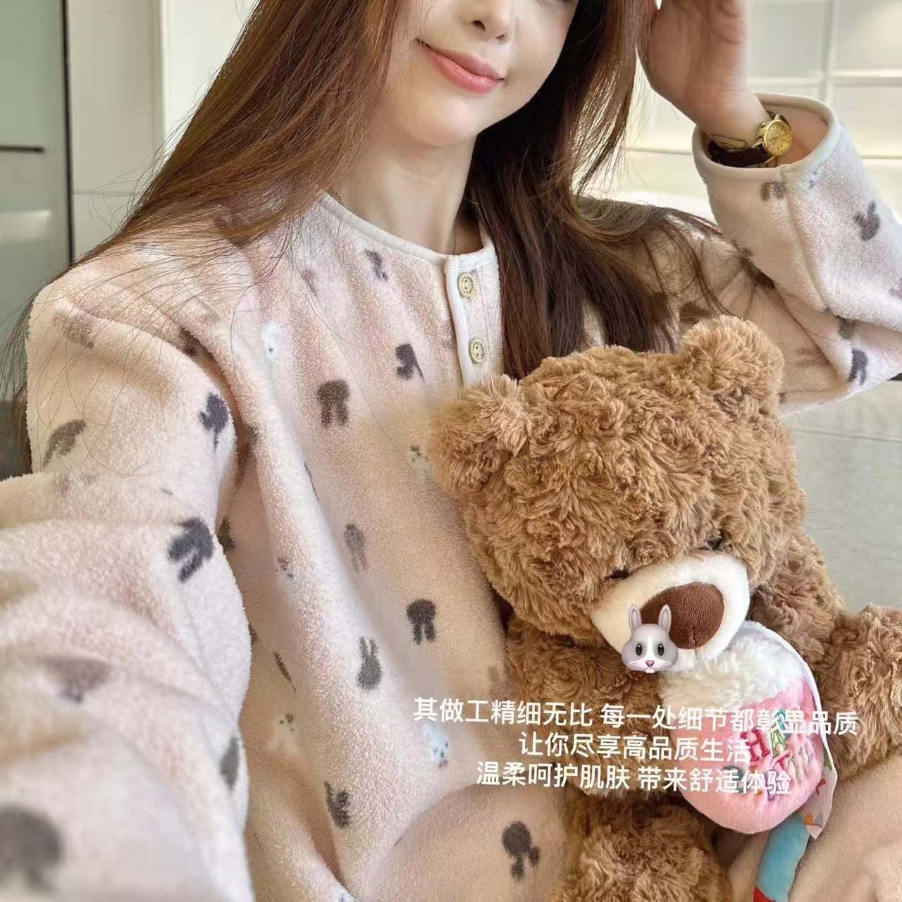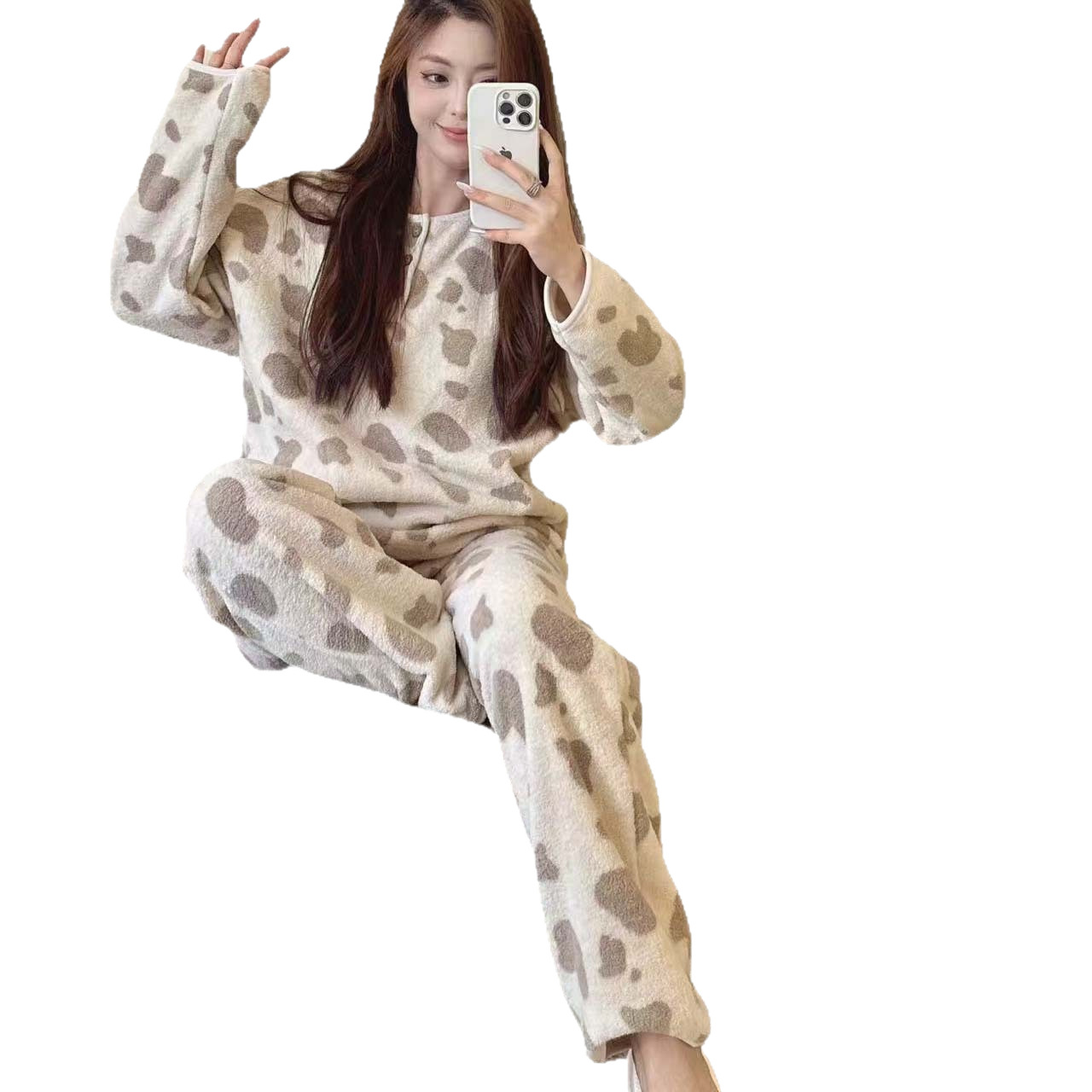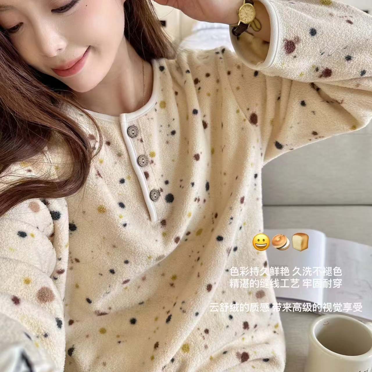 MOTIE Post 2418 Warm Heart suit Women's Cartoon Smiley Dot Pajamas suit Crewneck Comfortable Home Clothes