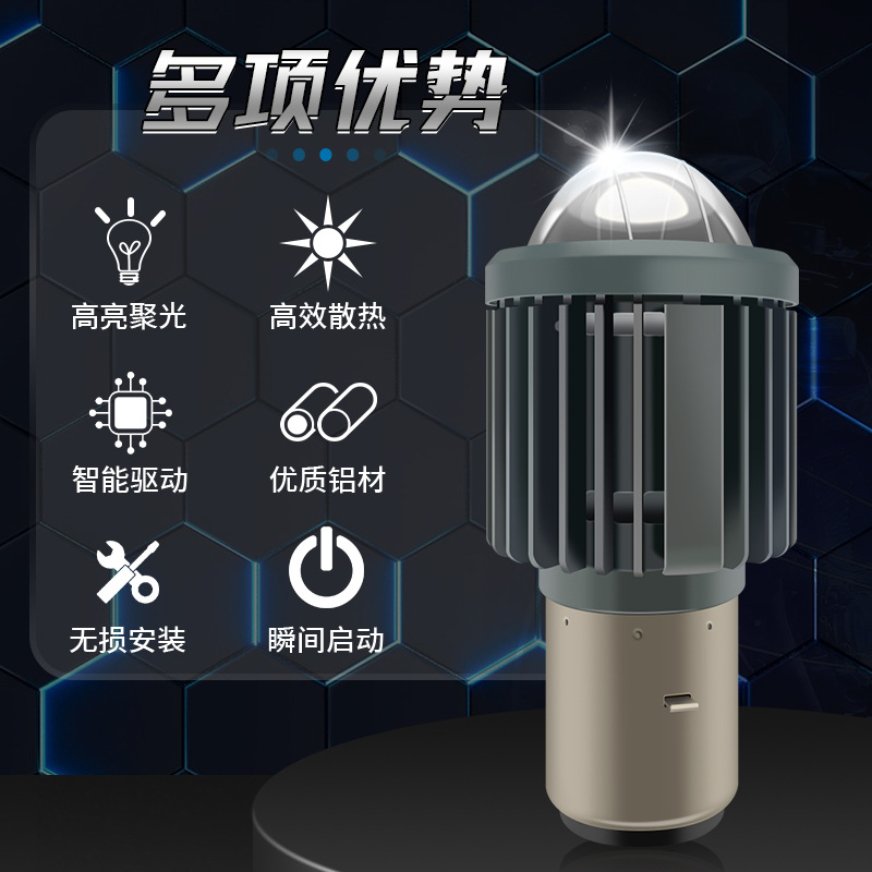 Motorcycle Led High and Low Beam with Built-In Lens, Fisheye Dual-Color, Electric Scooter Dual-Claw Modification, High-Brightness Dual Light