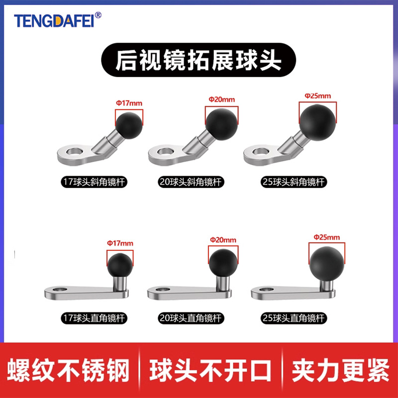 Motorcycle rearview mirror ball head base 172025mm extended bracket tilt mouth accessories electric scooter reflective
