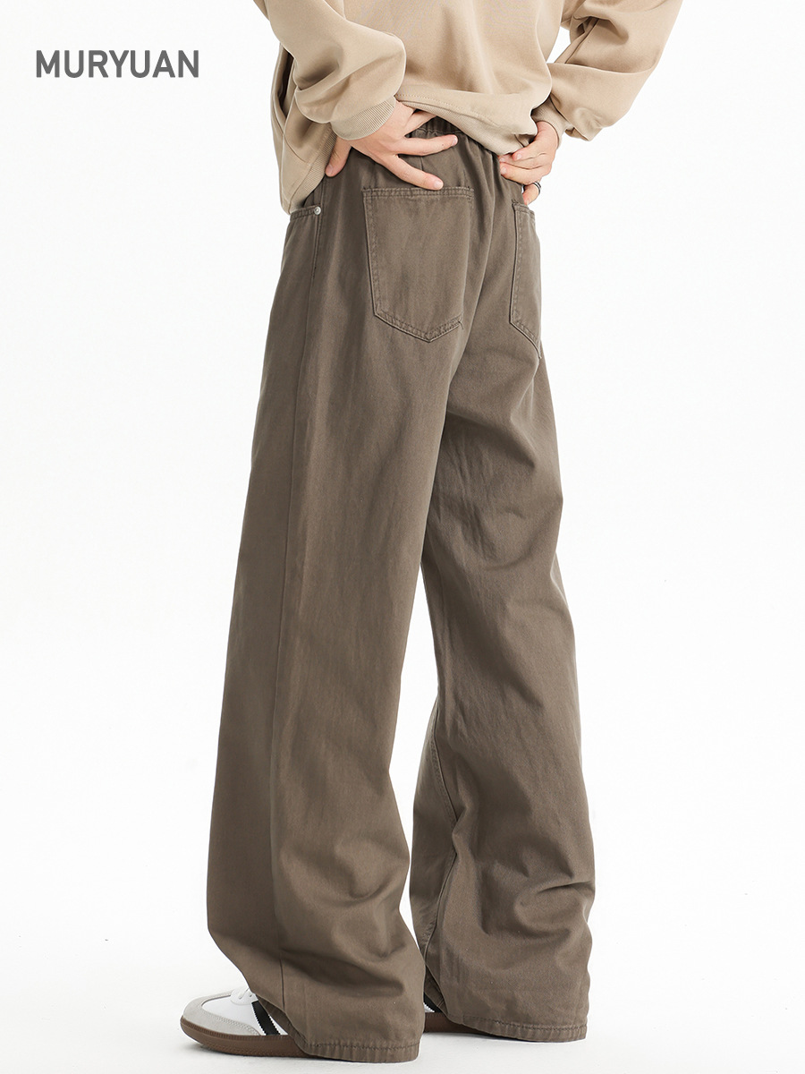 Mu Yuan Men's Maillard cleanfit Vintage Casual Pants Unisex All-match Loose Straight Long Pants