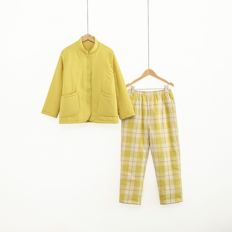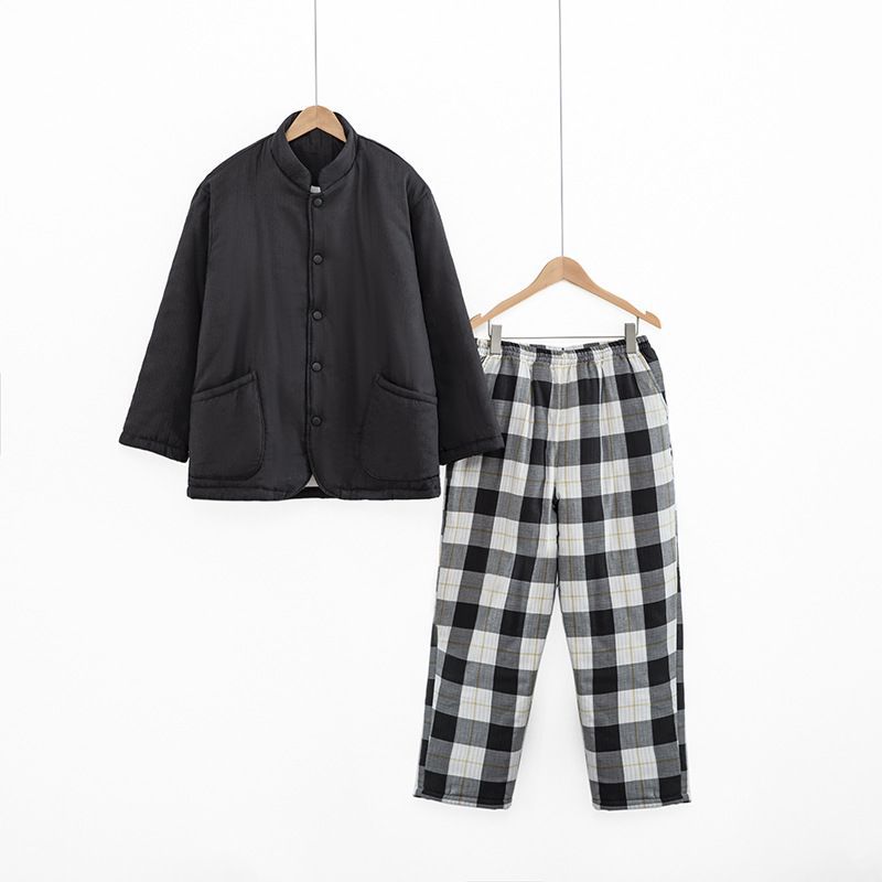 MUJI Japanese Style Yimi Thickened Pure Cotton Double-layer Yarn Quilted Pajamas Women Solid Color Men's Winter Home Clothes Cotton Coat