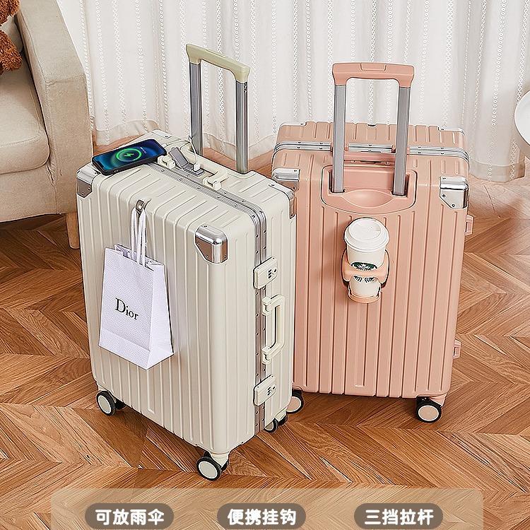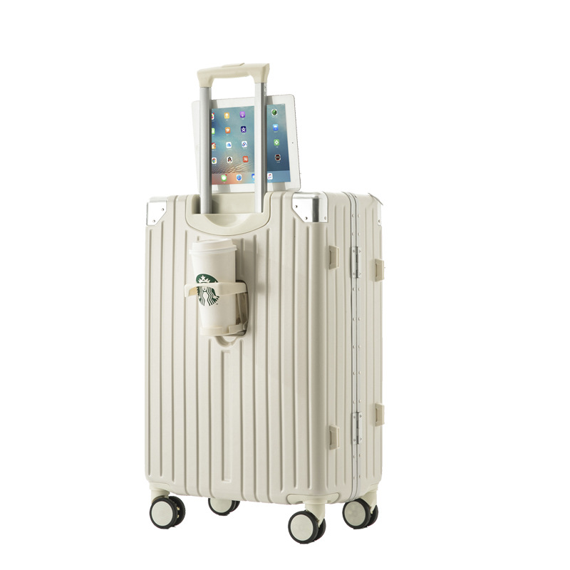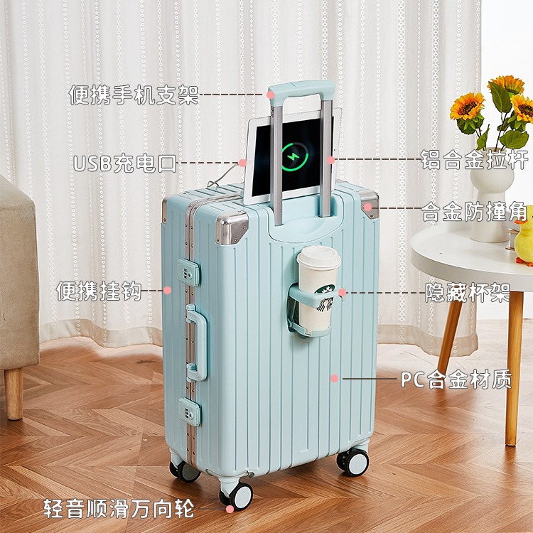 Luggage Suitcase with Wheels for Women 20inch Carry-On Suitcase Durable Aluminum Frame Rechargeable Travel Suitcase for Men with Cup Holder Upgrade