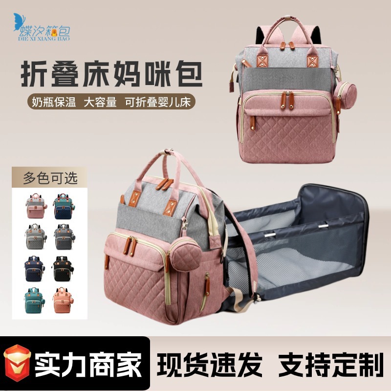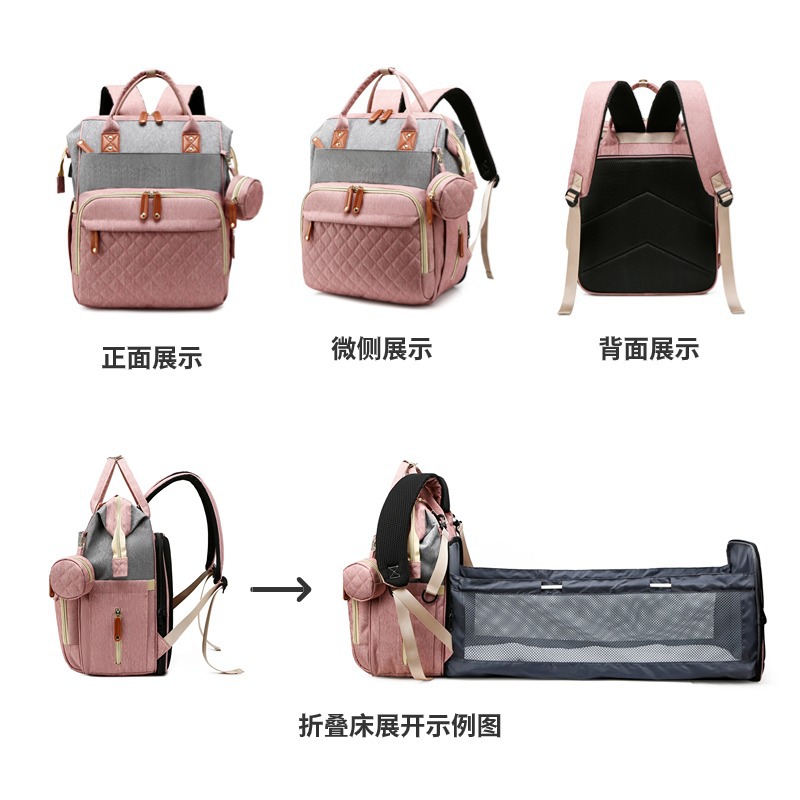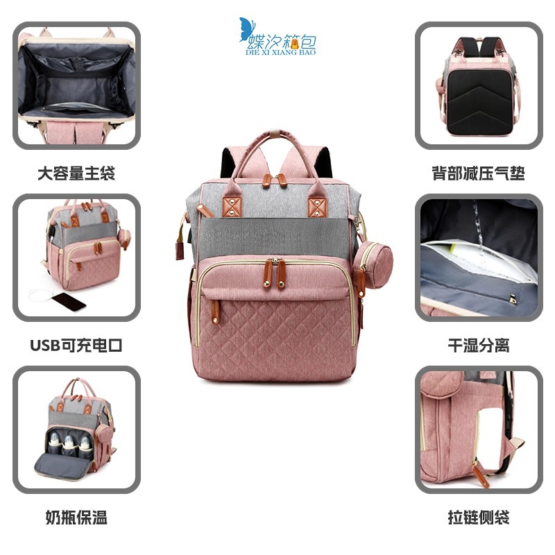 Mummy bag embroidery thread bed bag integrated multi-functional mother and baby bag internal wet and dry separation outgoing large capacity mother bag