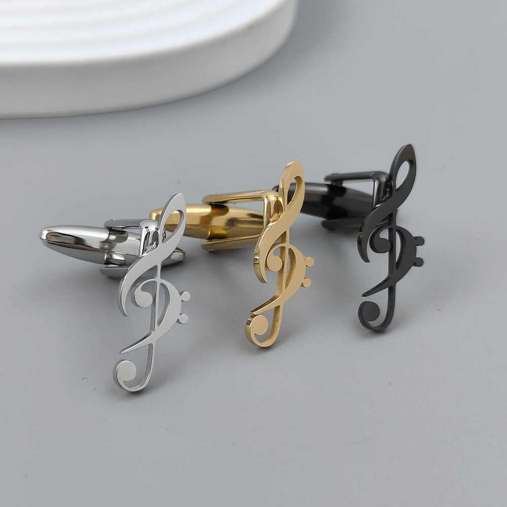 Music Symbol Titanium Steel Butterfly Buckle Brooch Metal Badge Pin Personality Note Cufflinks French Shirt Button
