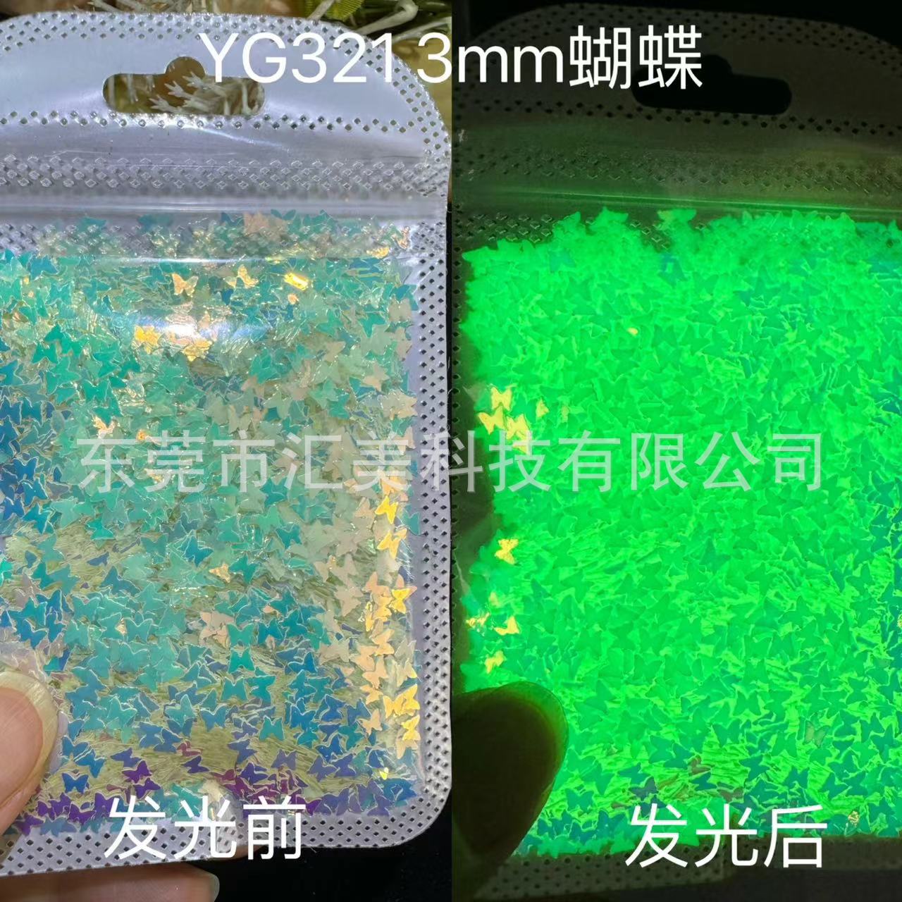 Nail luminous butterfly small bulb sequins 3MM butterfly highlight night luminous nail sequins color butterfly