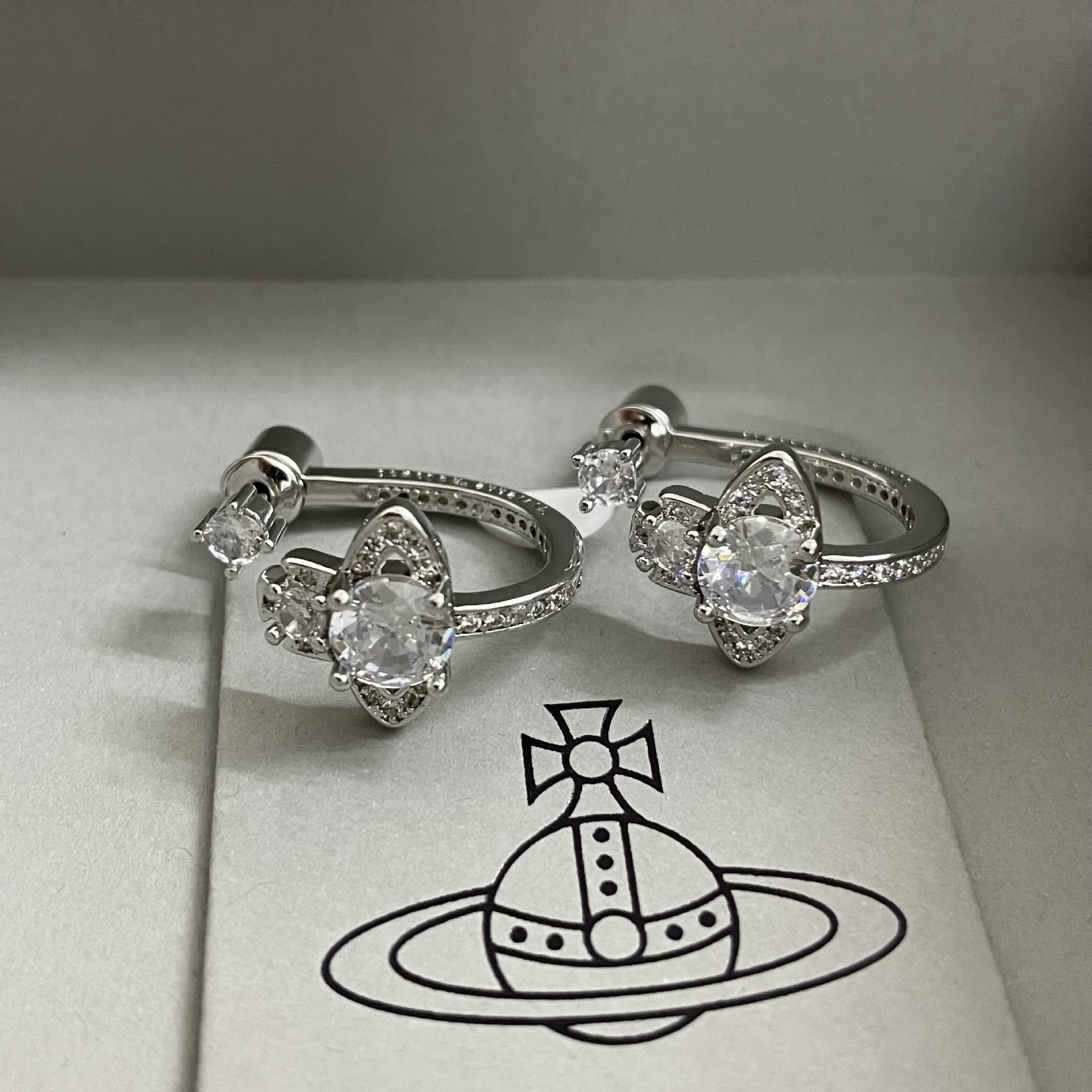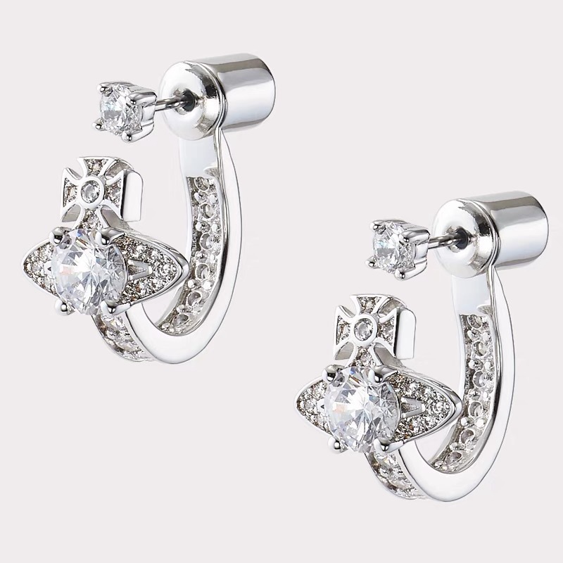 NANA Same-style Western Empress Dowager Rhinestone Saturn Open Earrings Women's High-grade Full Diamond Planet U-shaped Detachable Earrings