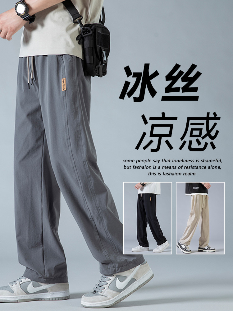 NASA Ice Silk Pants Men's Summer Cool Quick-drying Straight Casual Pants Men's Youth Loose Breathable Thin Sports