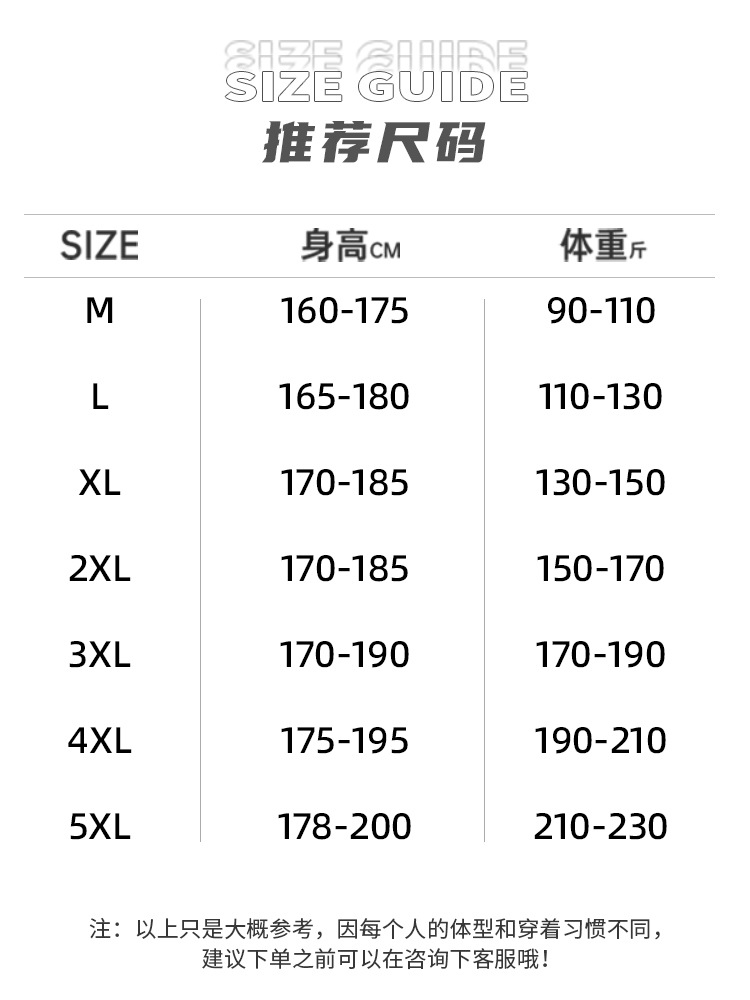 5XL recommend 105.00 kg-115.00 kg