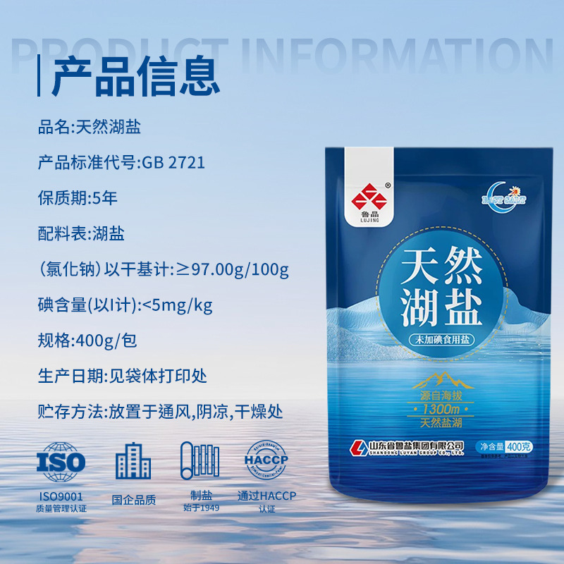 National Enterprise Direct-Operated Lu Jing Natural Lake Salt 400g Zero-Added Anti-Caking Agent Non-Iodized Table Salt Edible Salt Condiment