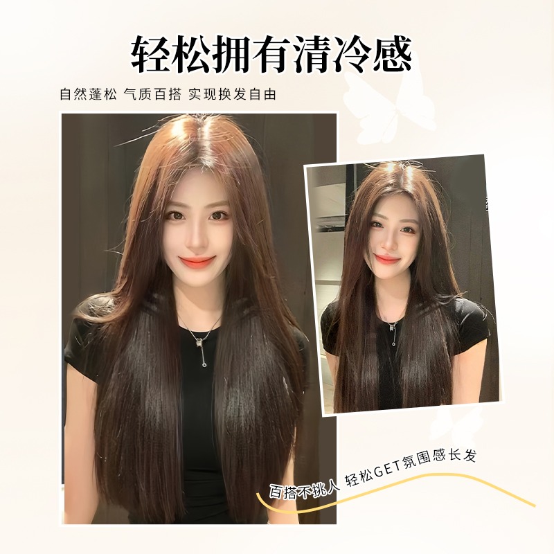 Natural Black Long Straight Wig Full Head Cover Lace Front Seamless Fluffy Light Real Hair Middle Parted White Moonlight Wig Cover