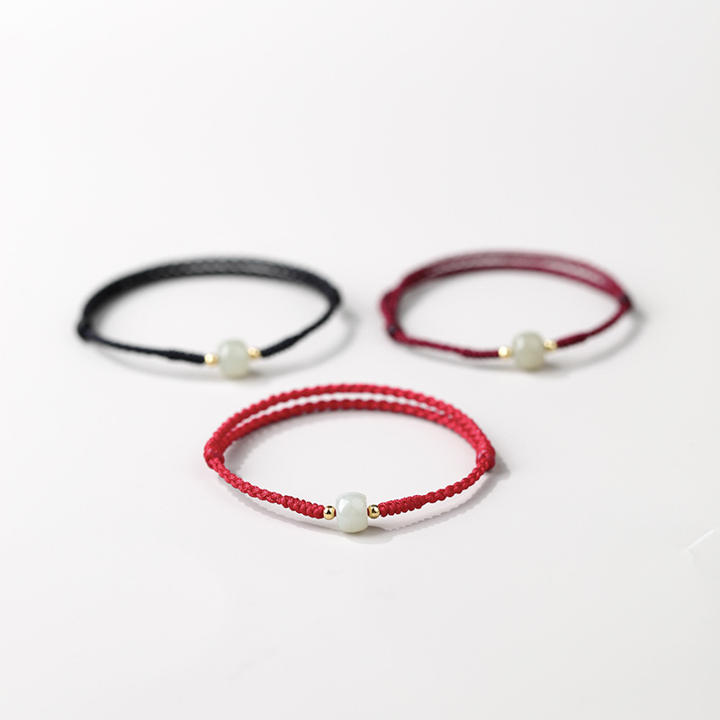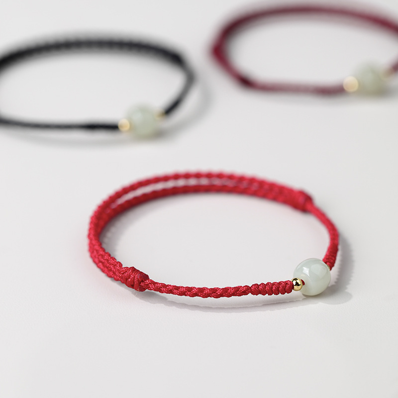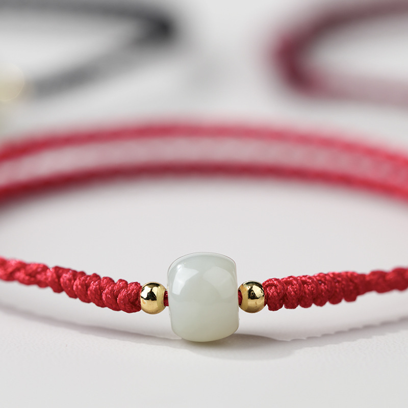 Natural Hetian Jade Red String Bracelet for Women, Hand-Woven Red String for the Year of Birth, Hetian Jade Old-Style Bead Vajra Knot Anklet