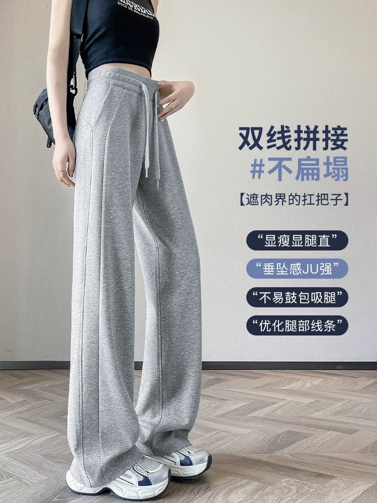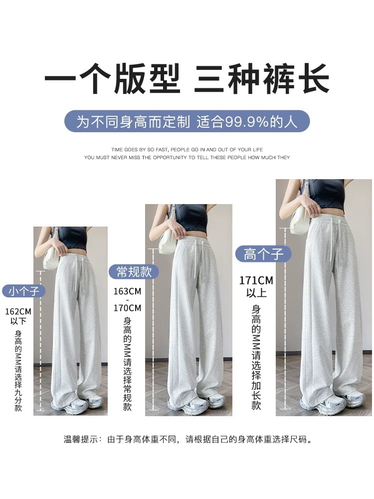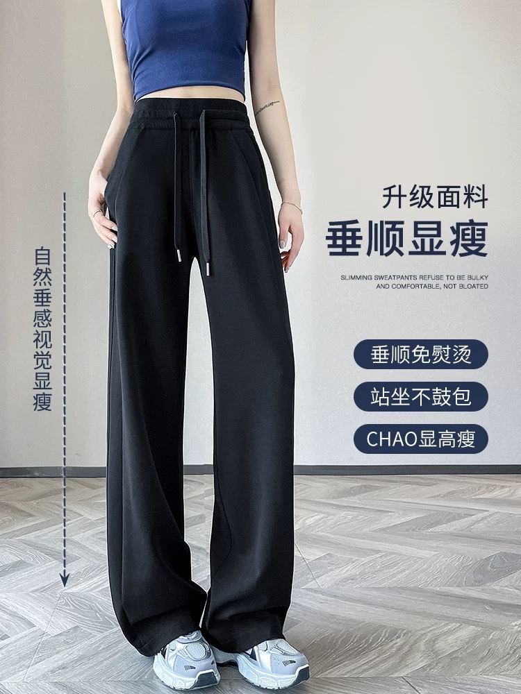 Navy Blue Wide-Leg Pants for Petite Women, Summer New High-Waisted Casual Sweatpants, Slim Straight-Leg Sports Pants
