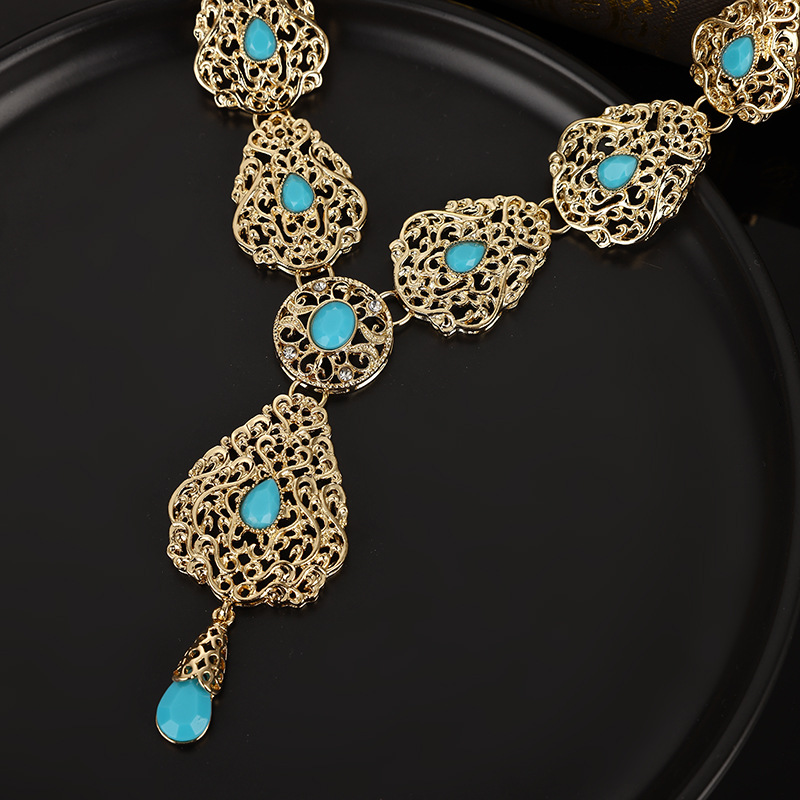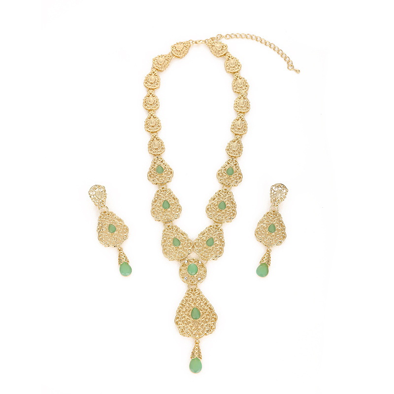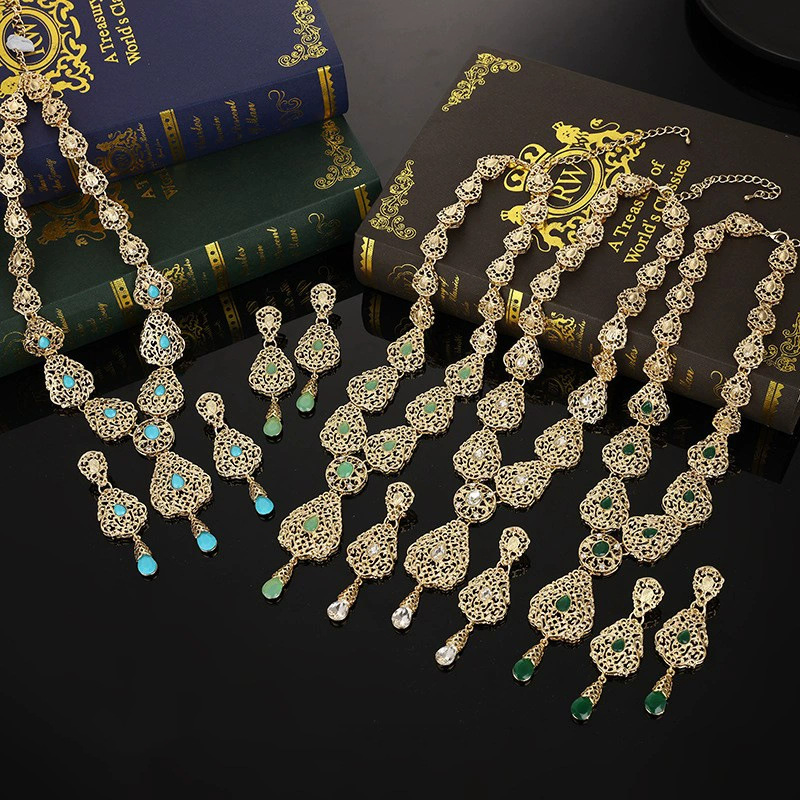 Cross Border Middle East Golden Luxury Women's Wedding Water Drop Necklace Earrings suit Arabic Alloy Jewelry suit