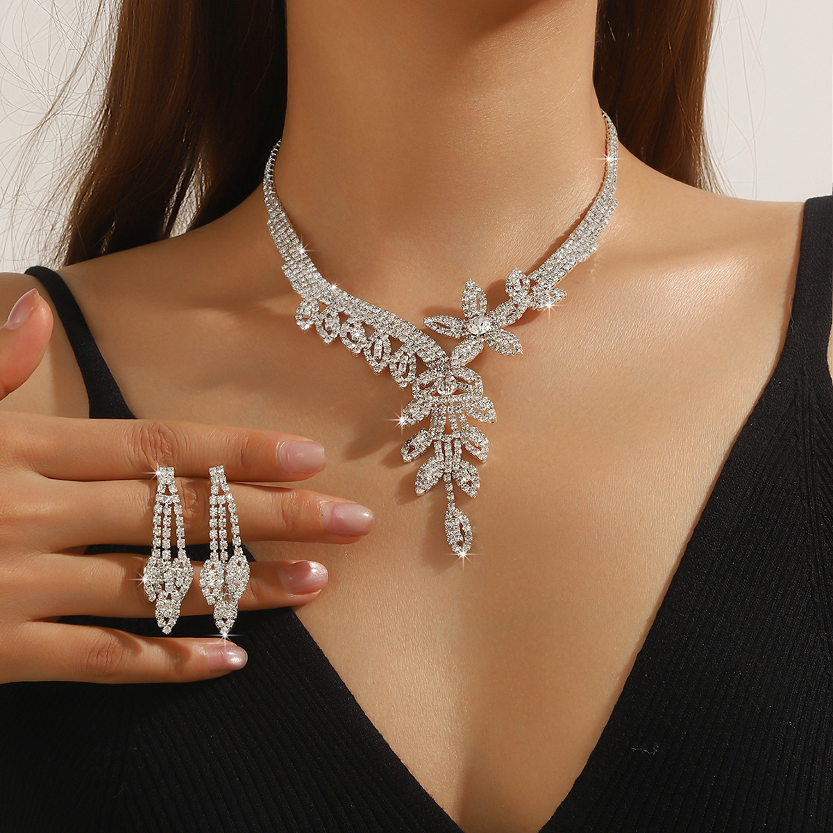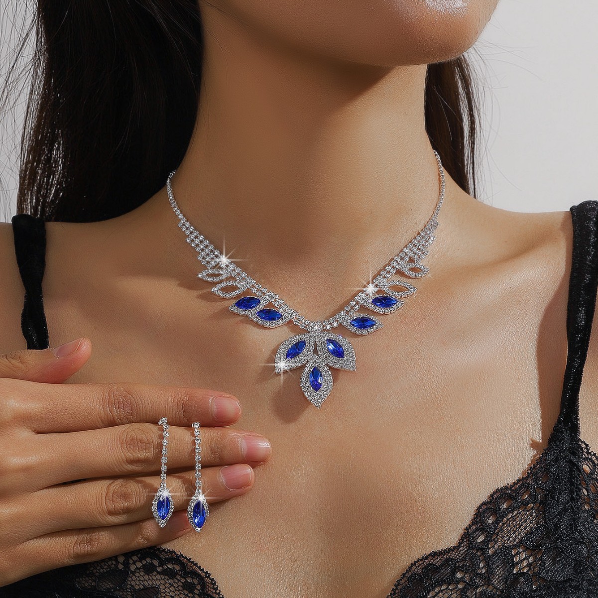Necklace Women's Fashion European and American Zircon Necklace Earrings Set Bridal Wedding Veil Evening Party Jewelry Set Accessories