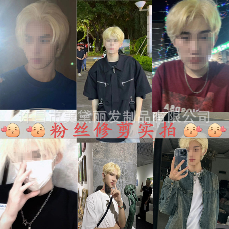 Net red men's wig 613 white gold 13*4 lace wig real hair head cover front lace wig