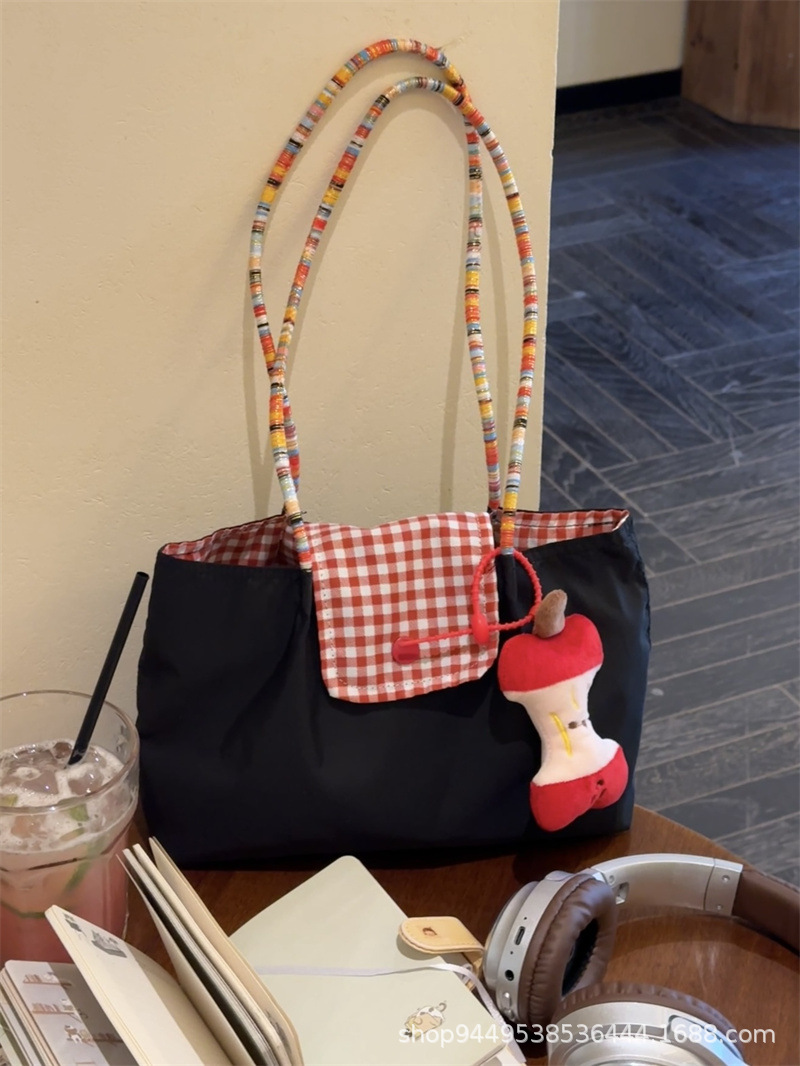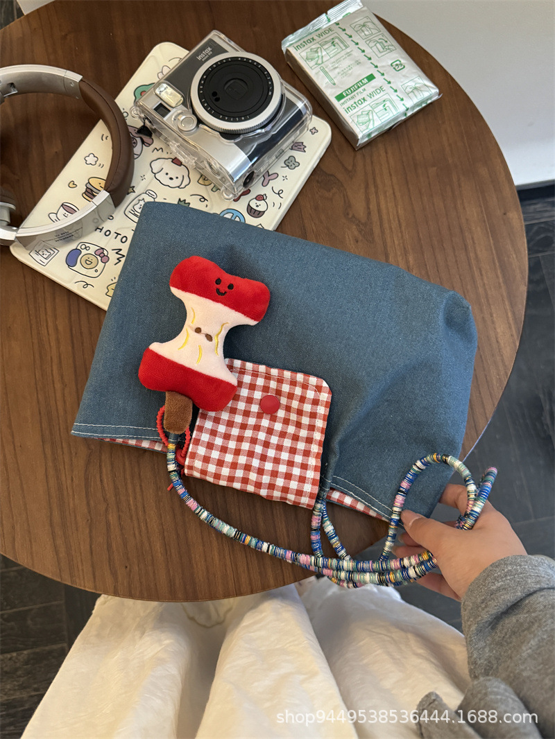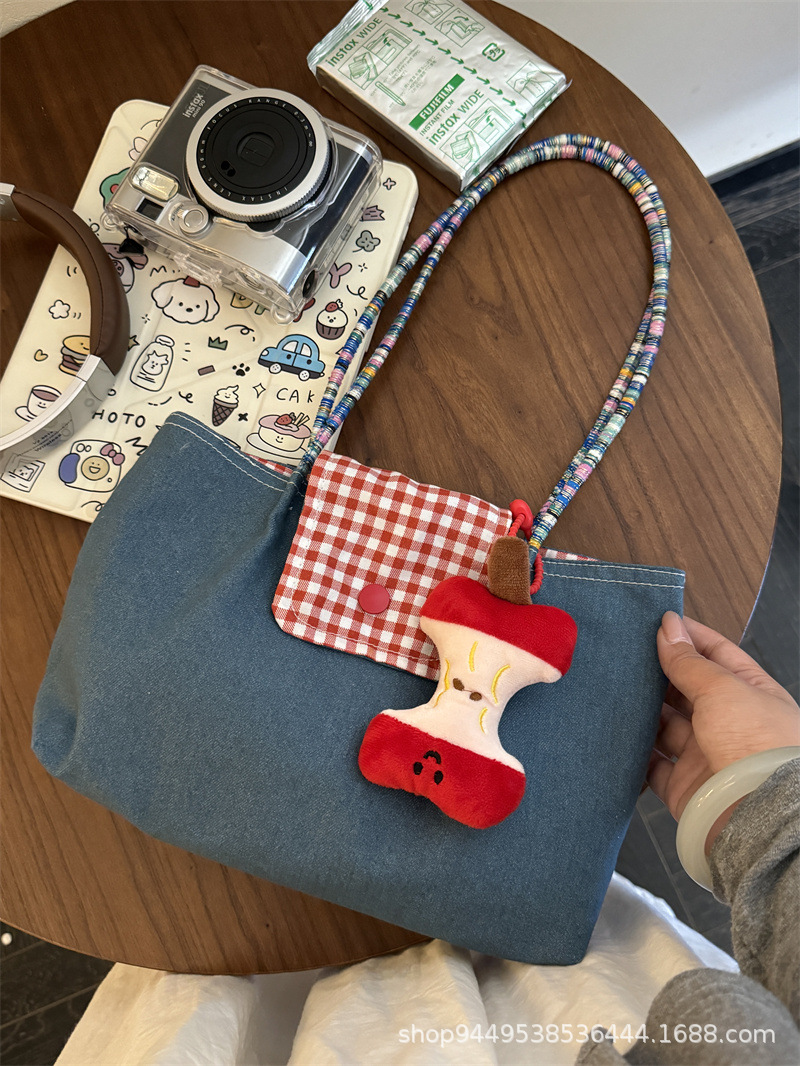 New 2025 Large Capacity Denim Shoulder Portable Plaid Canvas Bag Easiest for Match Commuting Retro Casual Tote Bag for Women