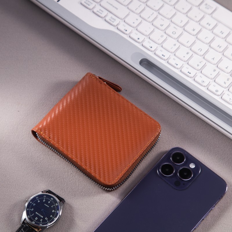 New 2025 Men's Wallet Short Carbon Fiber Pattern Business Large Capacity Zipper Bag Card Bag Chain Bag Cross-Border Explosion
