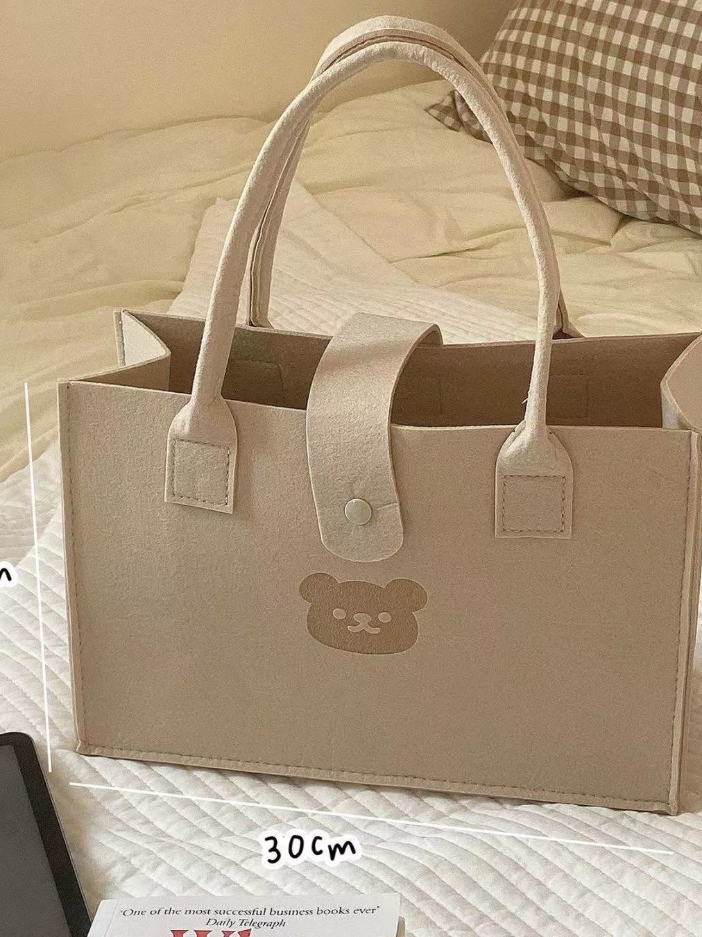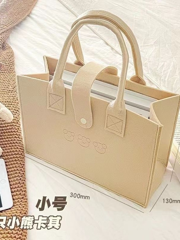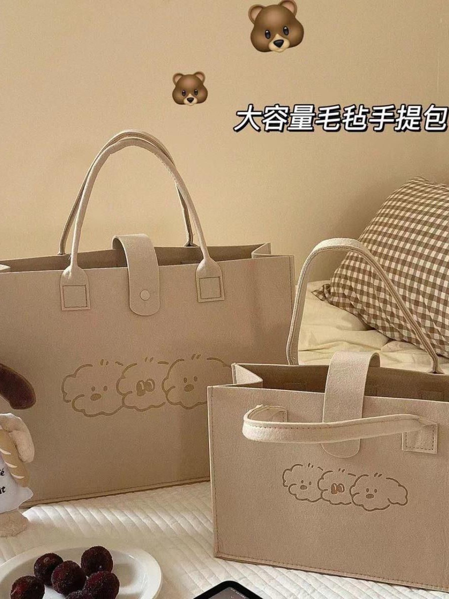 New Bear Felt Bag Handbag Women's Travel Shoulder Shopping Bag Tote Bag Cartoon Lunch Large Capacity Bag