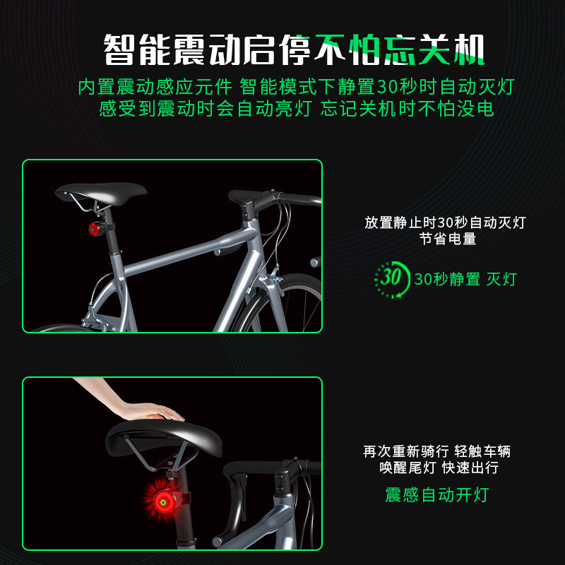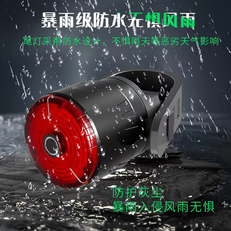 New bicycle double bracket smart brake tail light type-c charging waterproof vibration sensor night riding warning light