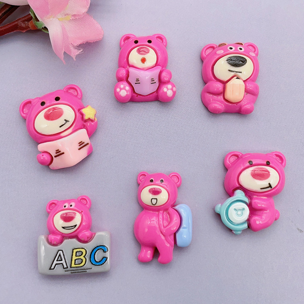 Cartoon Strawberry Bear Schoolbag Pencil Resin Accessories DIY Cream Glue Phone Case Hairpin Hair Rope Jewelry Small Accessories