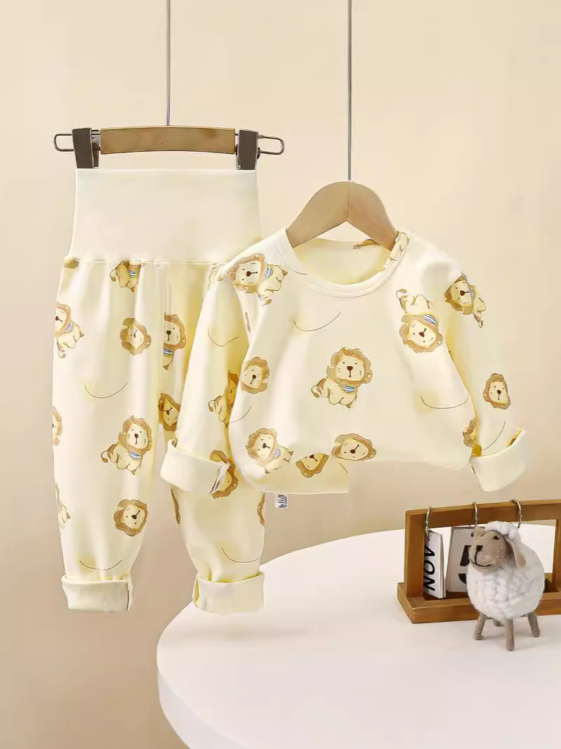 New Children's Pure Cotton High-Waisted Autumn Clothes and Long Trousers Set for Boys and Girls, Home Clothes, Infant Pajamas, Long Sleeves
