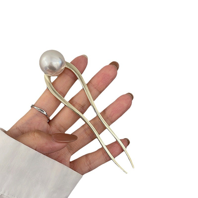 New Chinese-style Elegant Pearl U-shaped Hairpin High-grade Simple Head Hair Disc Hairpin Design Hanfu Headwear