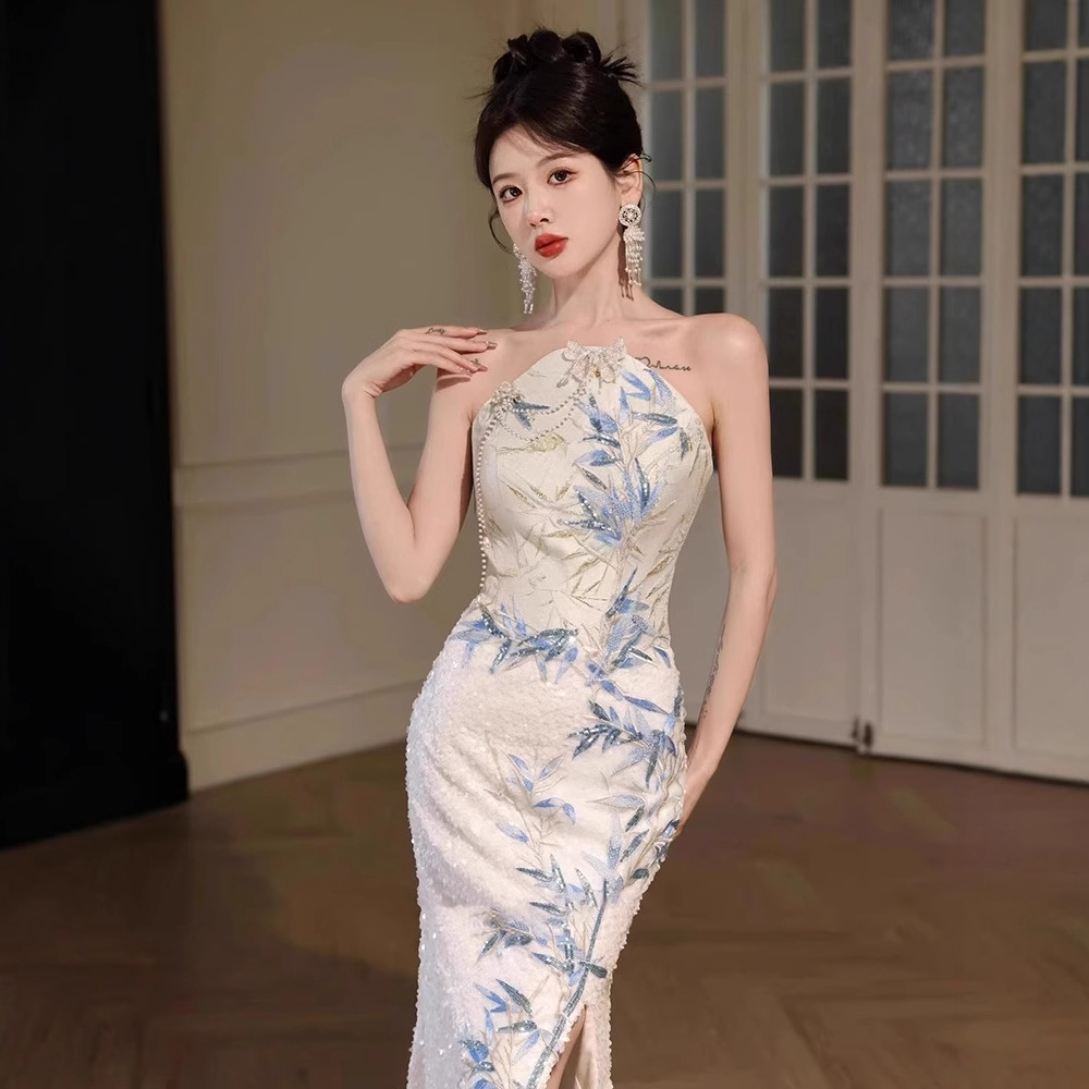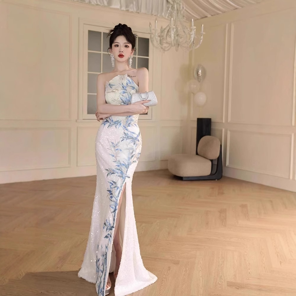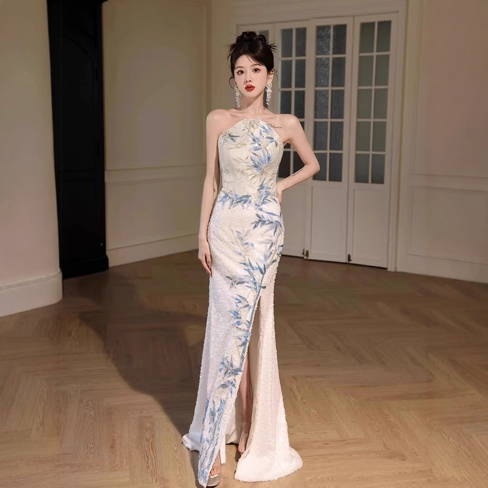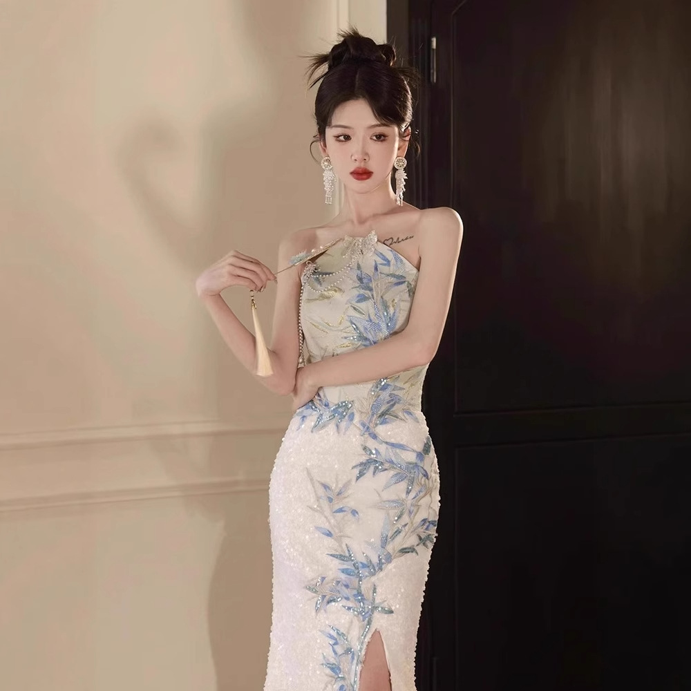Evening Dress New Chinoiserie Cheongsam Dress High-End Accessible Luxury Women's Dressing Gown Bride Banquet Toast Dress Fishtail Light Wedding Dress