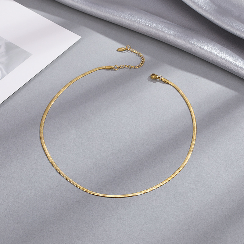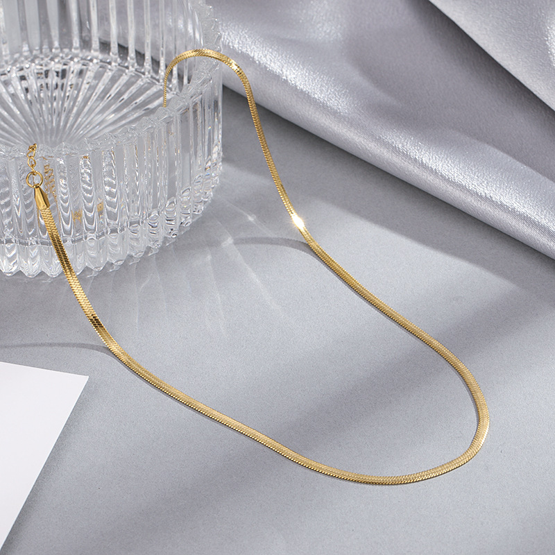 New classic flat snake bone chain necklace women simple titanium steel k gold popular light luxury clavicle chain jewelry wholesale